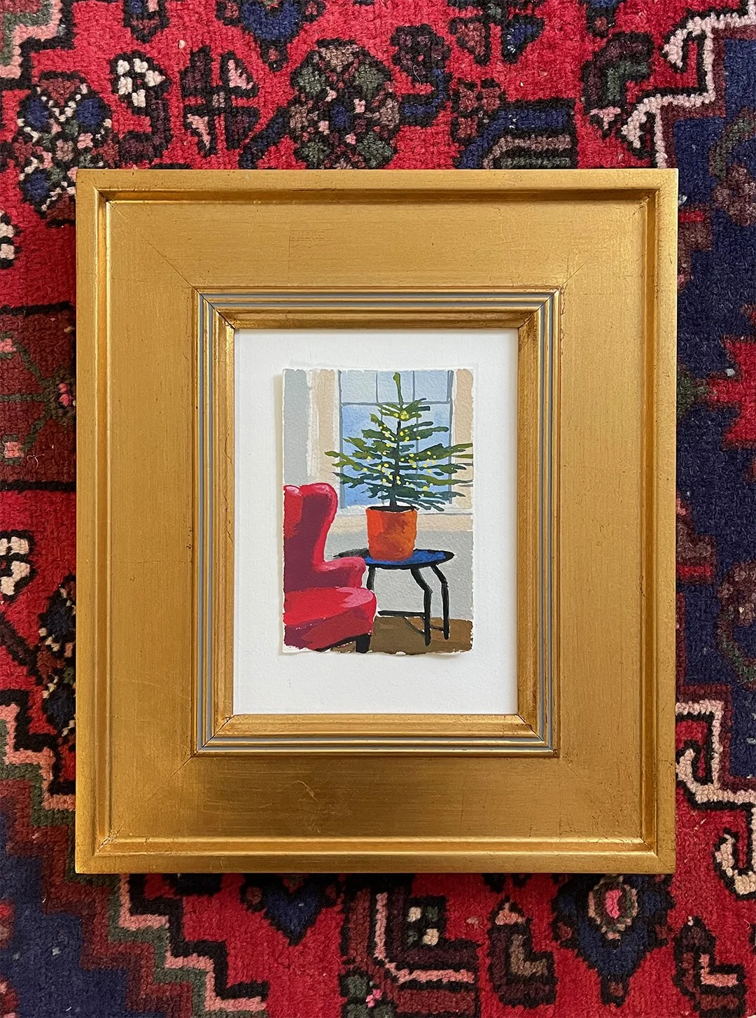 Tabletop Xmas Tree - gouache and watercolor